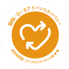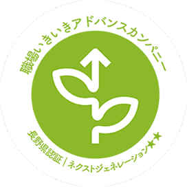 長野県より、働きやすい職場環境づくりに積極的に取り組む企業として「職場いきいきアドバンスカンパニー」に認証されています。