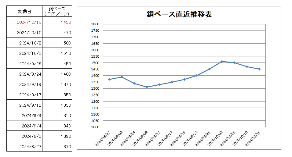 1450千円/トン(2万円下げ)