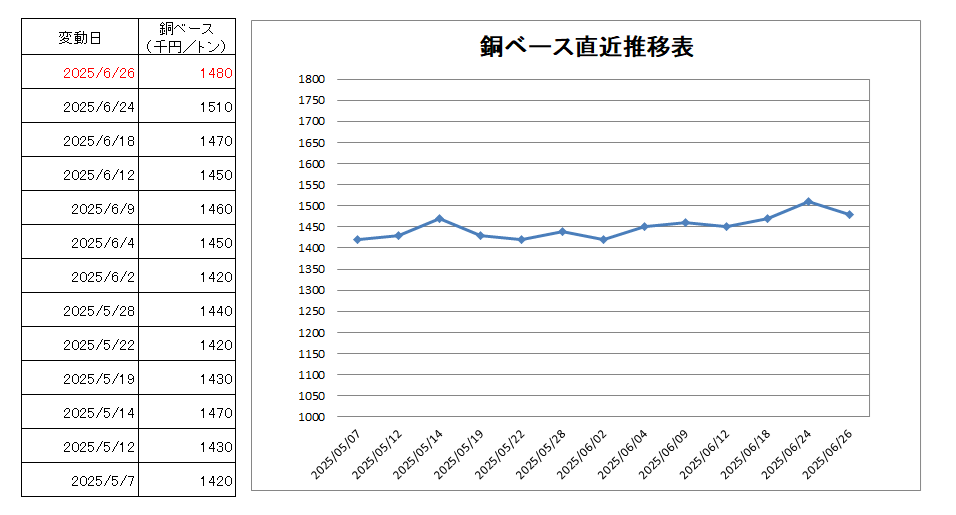 1480千円/トン(3万円下げ)