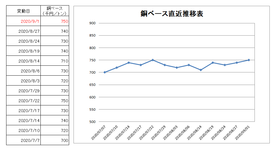 750千円/トン(1万円上げ)