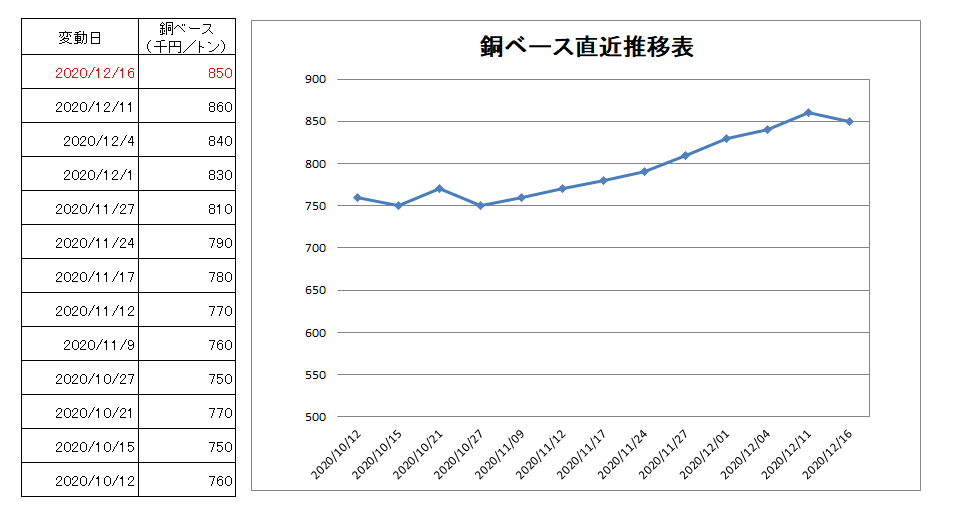 850千円/トン(1万円下げ)