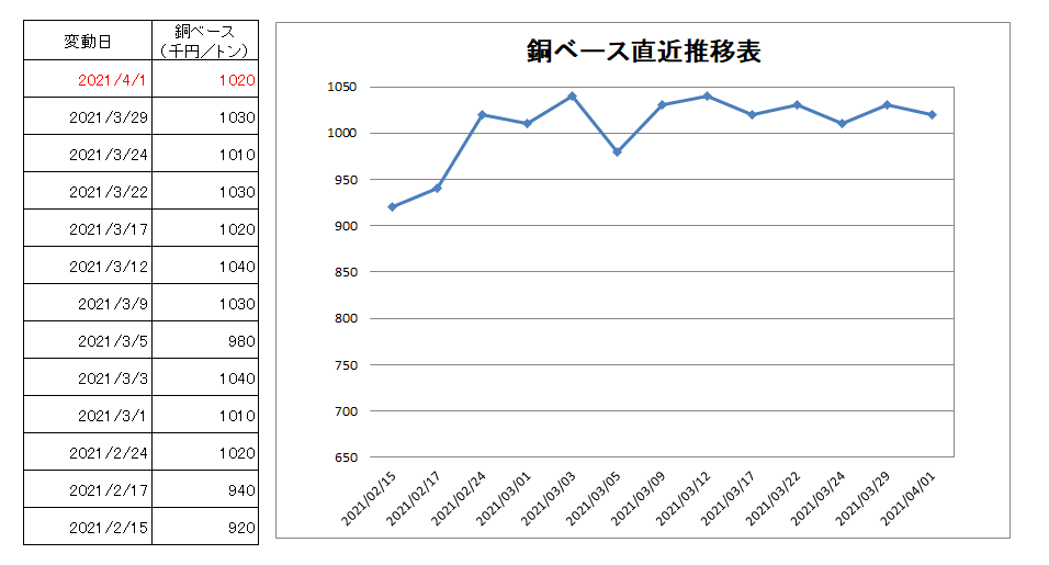 1020千円/トン(1万円下げ)