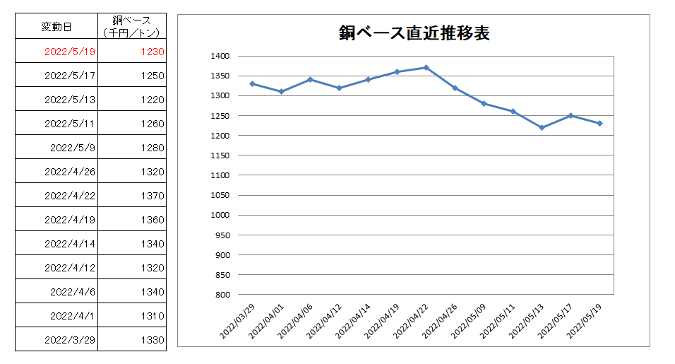 1230千円/トン(2万円下げ)