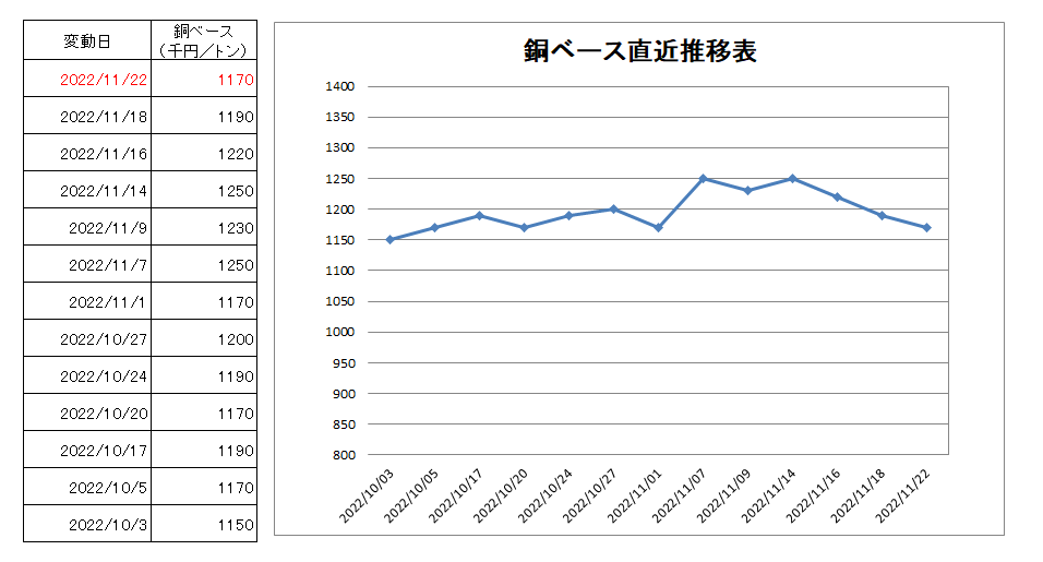 1170千円/トン(2万円下げ)