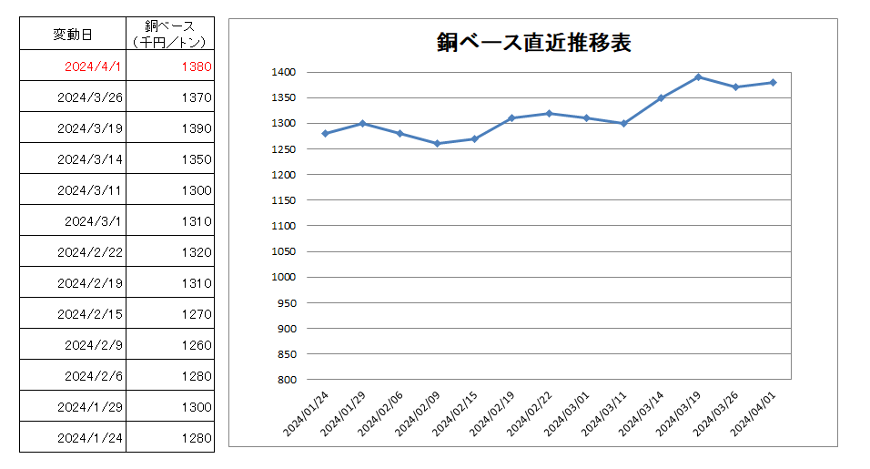 1380千円/トン(1万円上げ)
