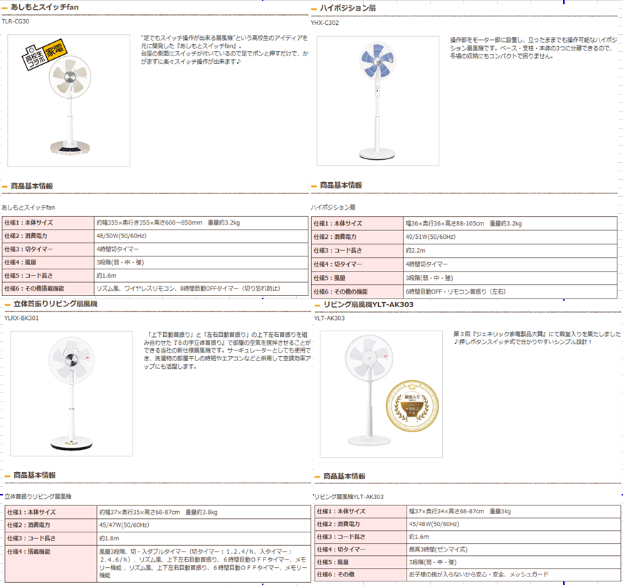 この4台の扇風機をサマーキャンペーンとしてご提案させて頂きます。