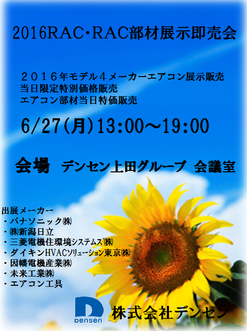 さて、弊社上田支店ではこの度、各社ルームエアコン及びエアコン部材の展示即売会を下記のとおり開催させて頂きます。