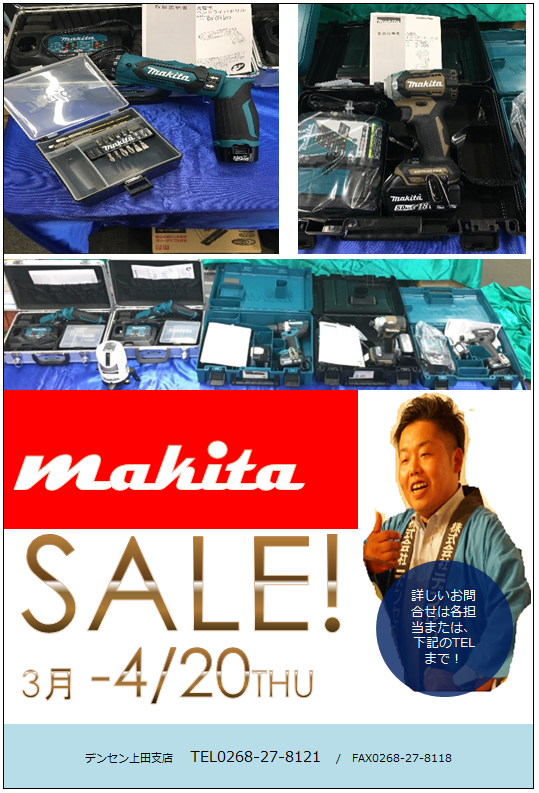 このたびデンセン上田支店ではマキタセールといたしまして下記の工具セットを