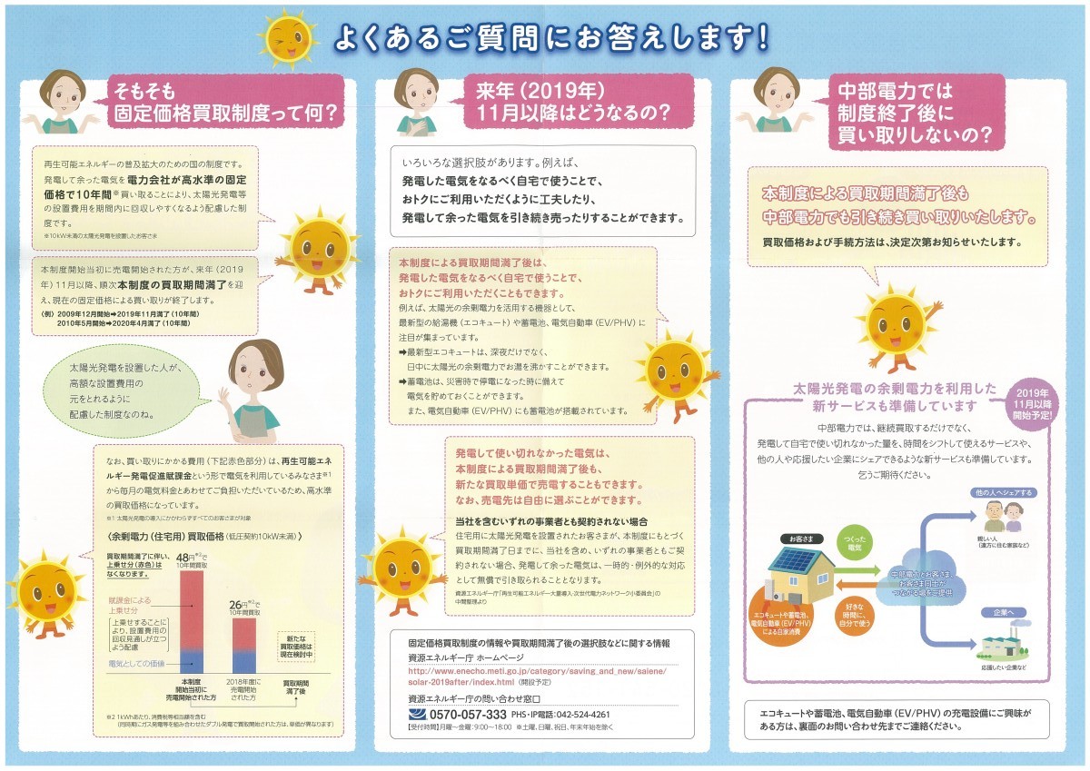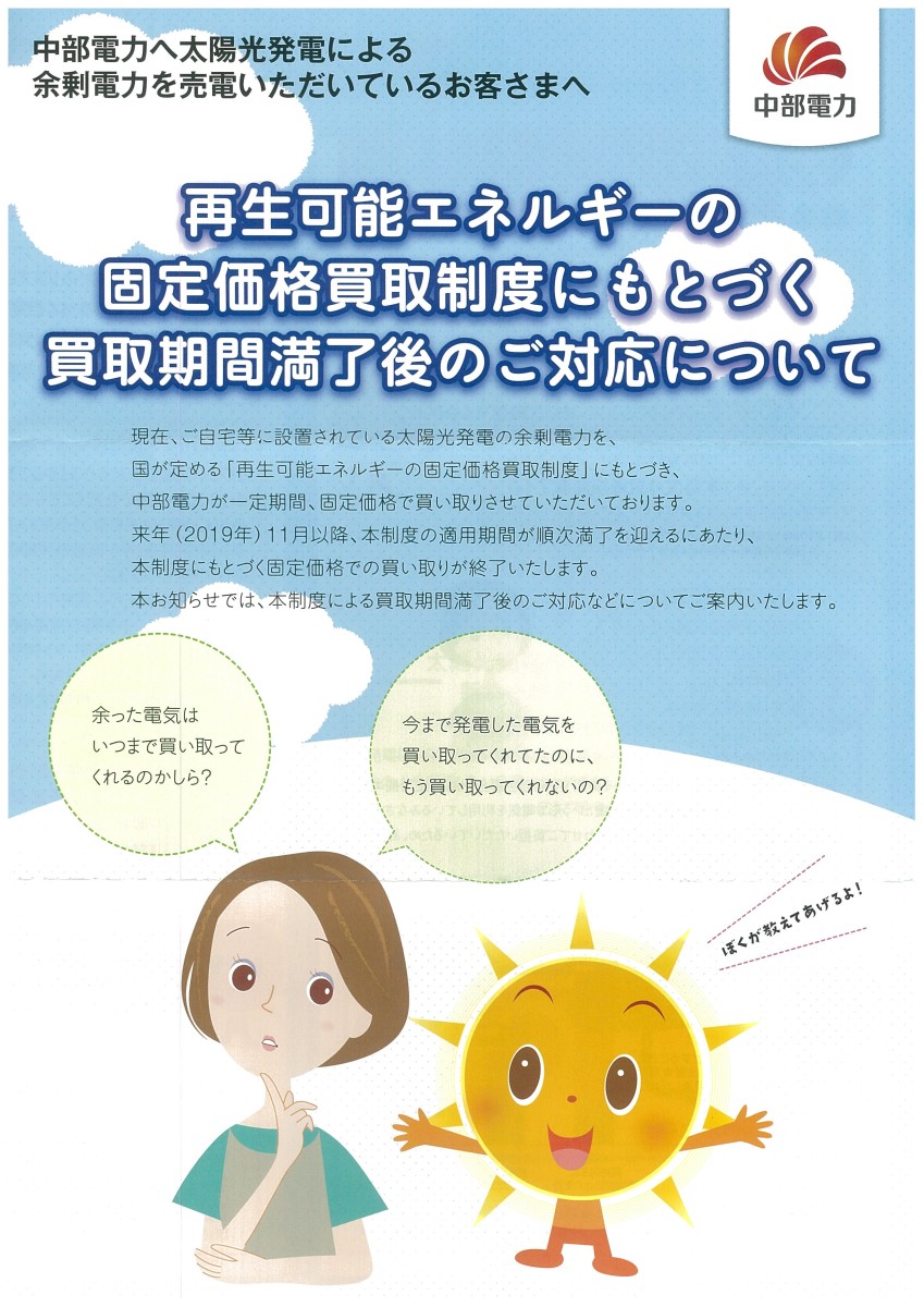 「中部電力へ太陽光発電による余剰電力を売電頂いているお客様へ」