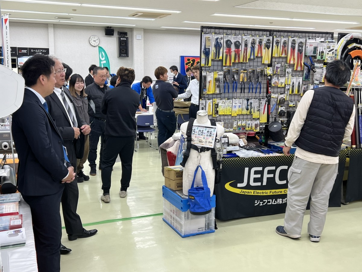 企画した電気工事業界の業務効率化に寄与するデジタルツール「DEN-UP」研修会へも多数のお得意様にご参加を頂く事が出来、また展示会場内でも各メーカーブースにおいて新商品等の説明を熱心に聞かれているお得意様の様子を多数伺う事が出来ました。