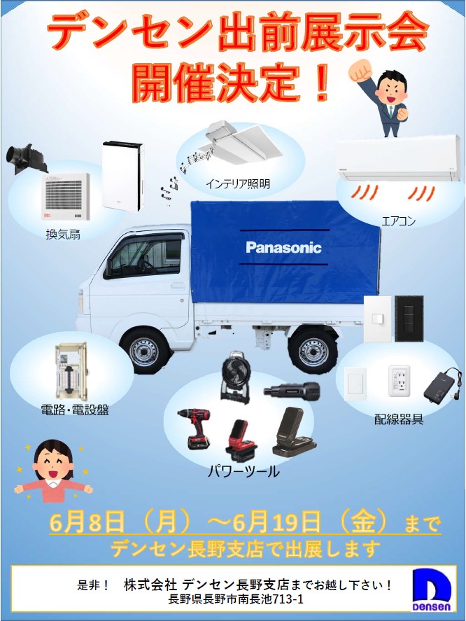 その第1弾として、Panasonic 出張店頭展示会を本日より6月19日迄の2週間に亘り、長野支店の店頭にて開催を致します。