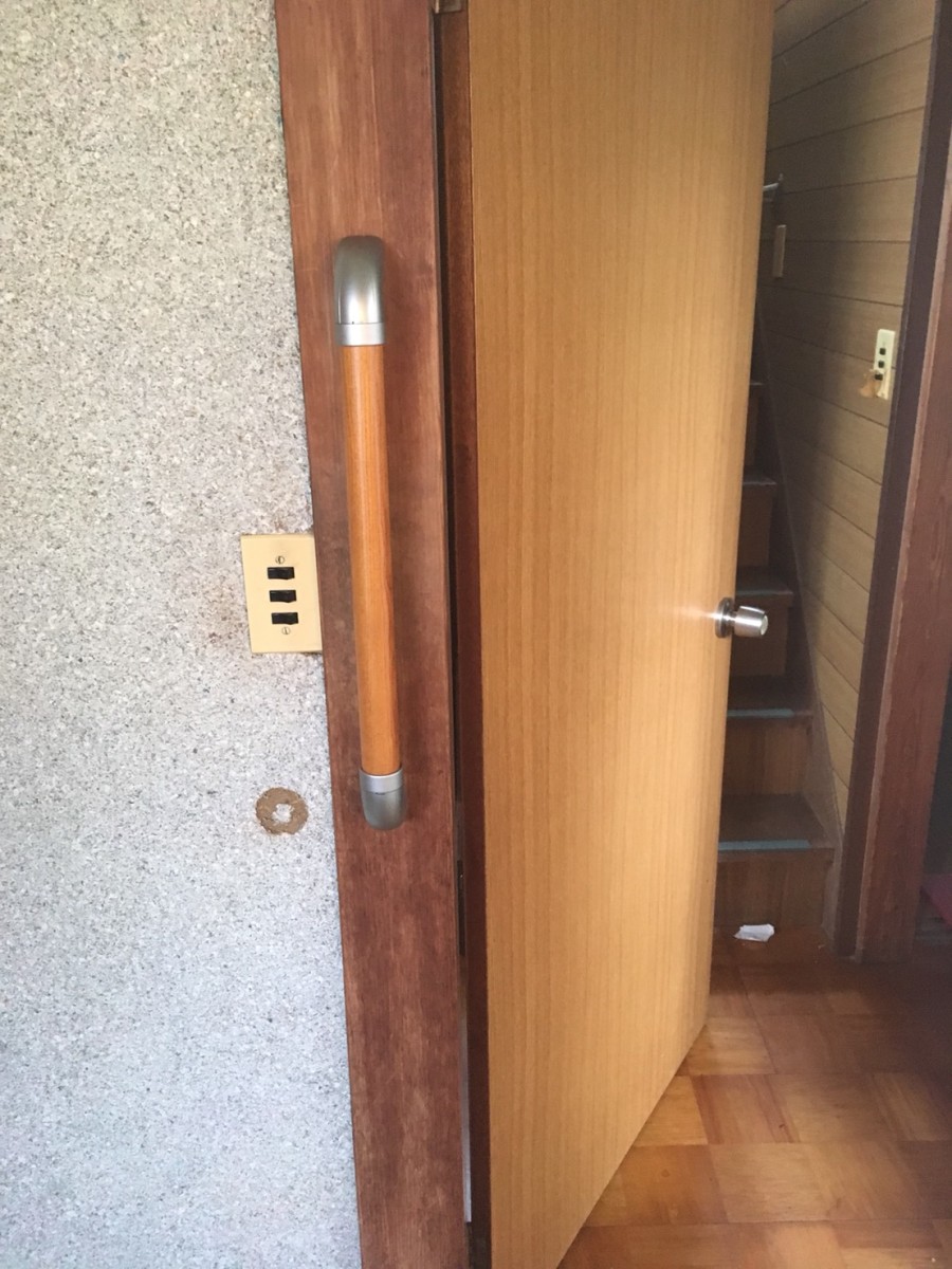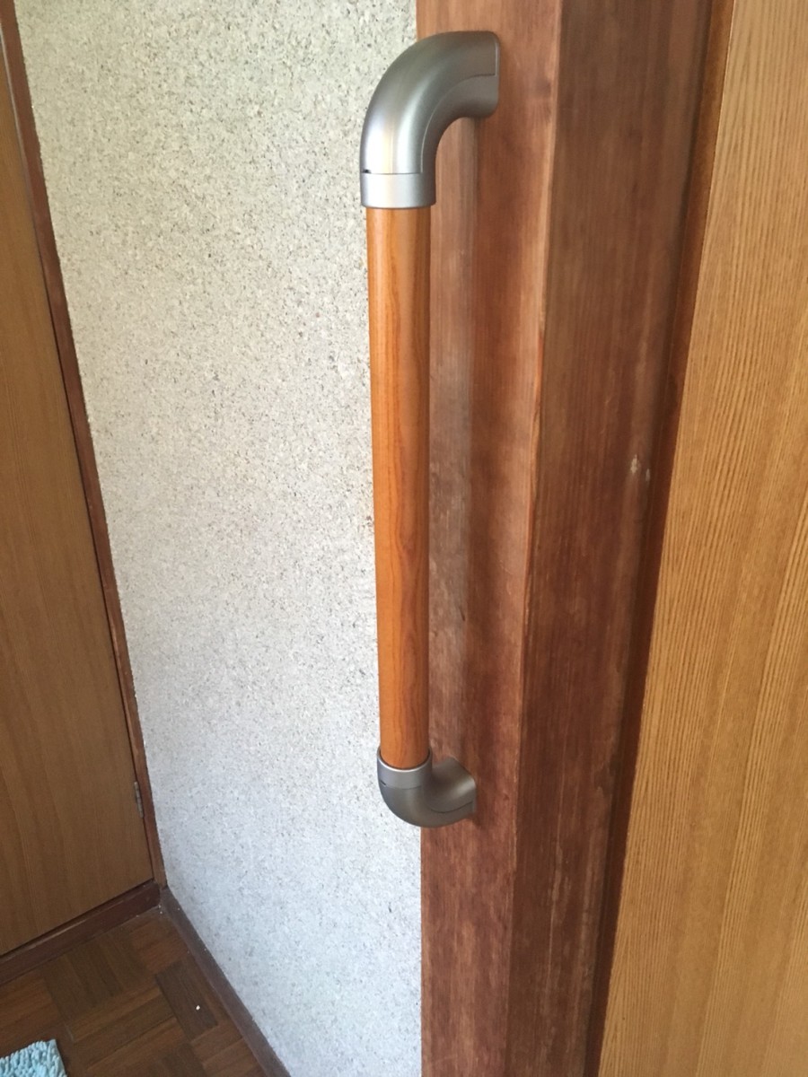 2018.06.26 ~手すり取付工事 事例1~ 本日は住宅改修工事の事例のご紹介です。 『70代 男性のケース』トイレの入口にあるスイッチを、柱を掴みながら操作。バランスが不安定なので、転倒予防の為にしっかり掴んで操作できるよう手すりを設置しました。大好評でもう1本追加のご依頼を頂きました!!手すり1本からでもご相談下さい♪