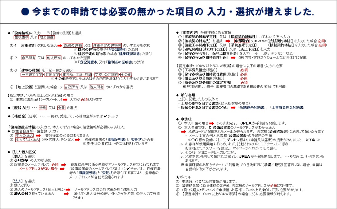 と言う事で、申請に必要な添付書類などが増えて、設備設置者の方(代理も含む)は申請