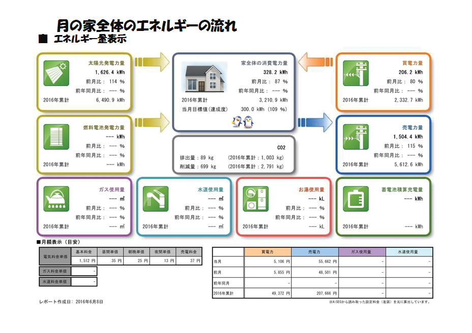 エコレポートは昨年、当社の社員が導入した HEMS のデータをレポート化したもの