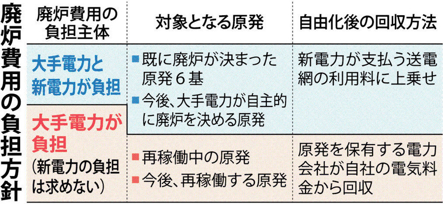 廃炉費用は基本的に、今まで通り稼働中や再稼働を目指す原発に限っては原発事業者
