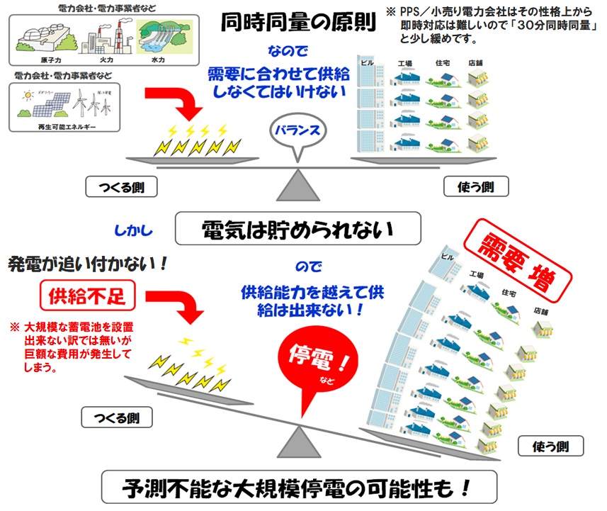 めた発電量を管理し、供給調整する義務・責任を求められています。何故これが大変