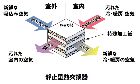 り、本来なら換気で失われる熱エネルギーのうち 顕熱(けんねつ)と潜熱(せんねつ)の