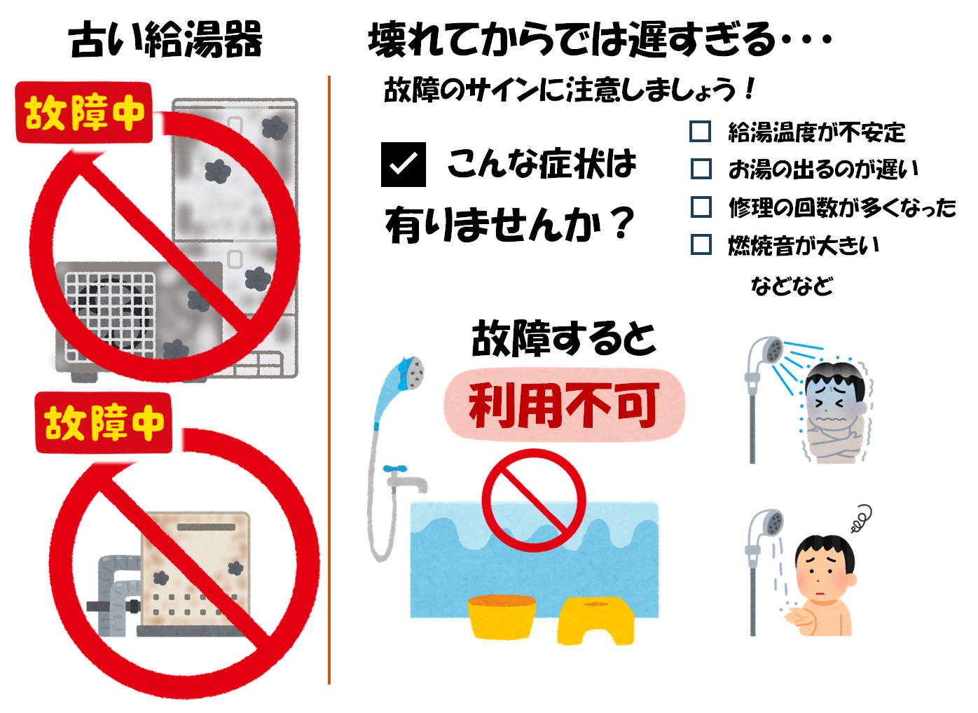 壊れてからでは納期が掛かり その間給湯器が使えません!