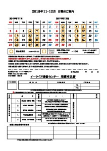 2019.11.01 研修スケジュール 11月、12月 11月、 12月の研修スケジュールご案内 PDFダウンロード 研修スケジュール 11- 12月 (表) PDFダウンロード 研修スケジュール 11- 12月 (裏)