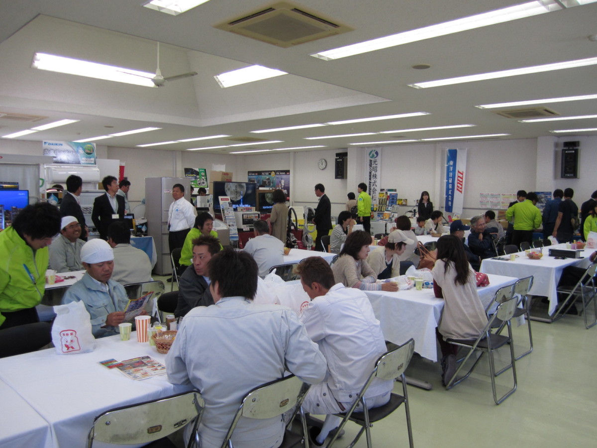 また、イベントとしては、高級牛、うなぎ蒲焼、ホームベーカリー、サイクロン掃除機などの大抽選会等で大いに盛り上がり、上田卸団地の創立50周年という記念の日に花を添えるイベントになったのではないかと思います。