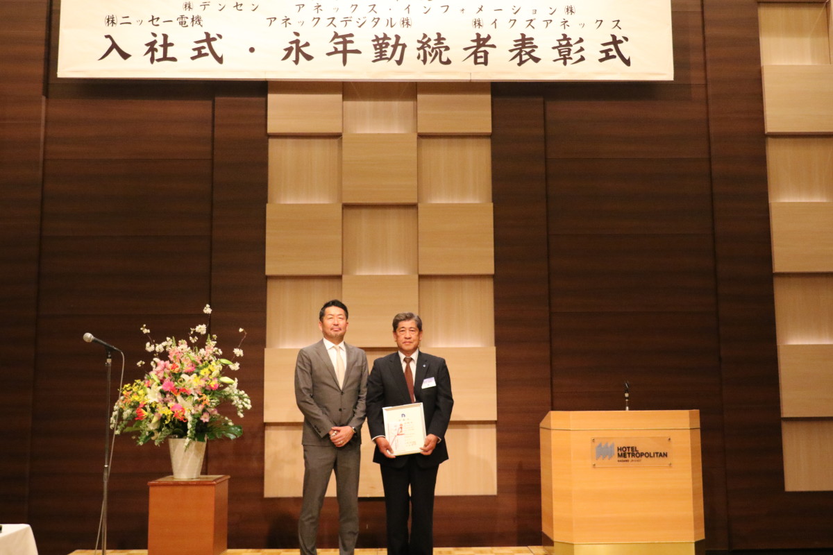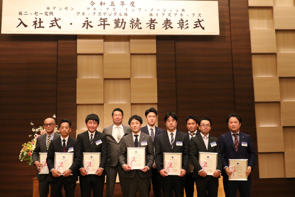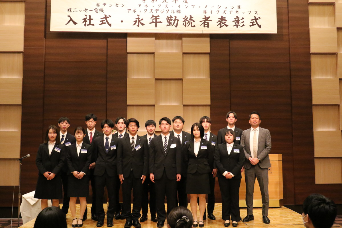 4月1日(土)長野市のメトロポリタン長野において弊社グループ(デンセンホールディングスグループ)合同の入社式&永年勤続表彰式を開催し、弊社の新入社員14名を含む総勢26名の新しい仲間が増えました。