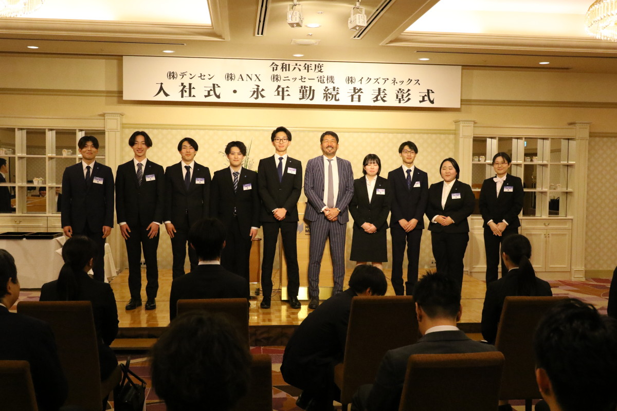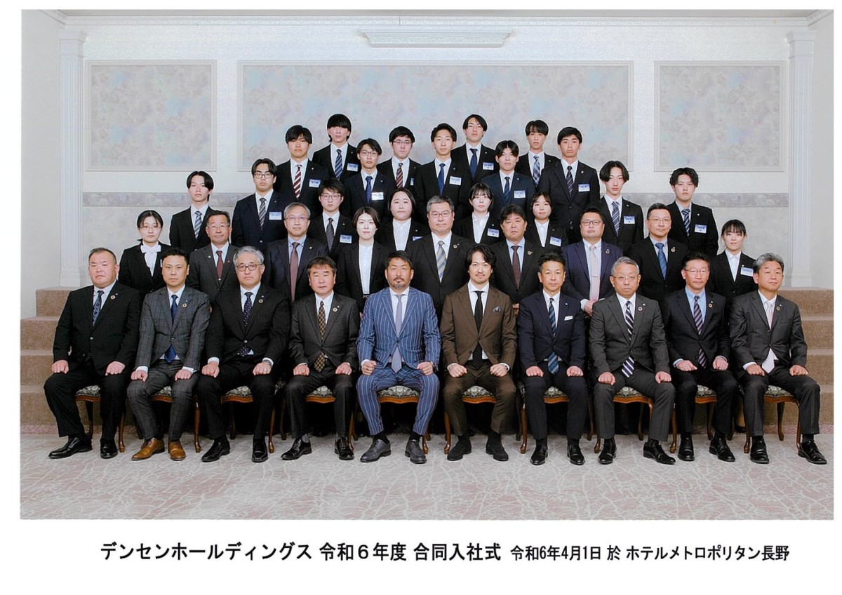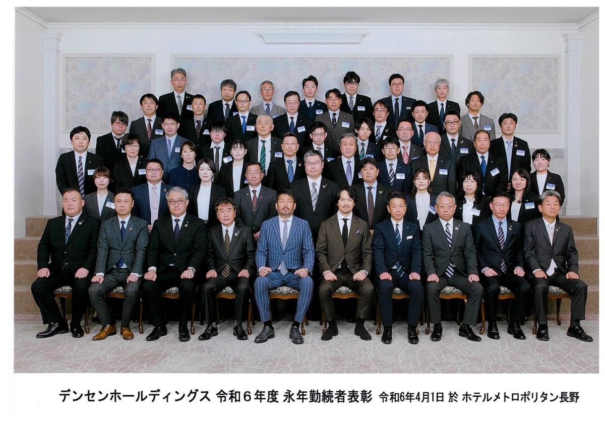 4月1日(月)長野市のメトロポリタン長野において弊社グループ(デンセンホールディングスグループ)合同の入社式&永年勤続表彰式を開催し、弊社の新入社員9名を含む総勢19名の新しい仲間が増えました。